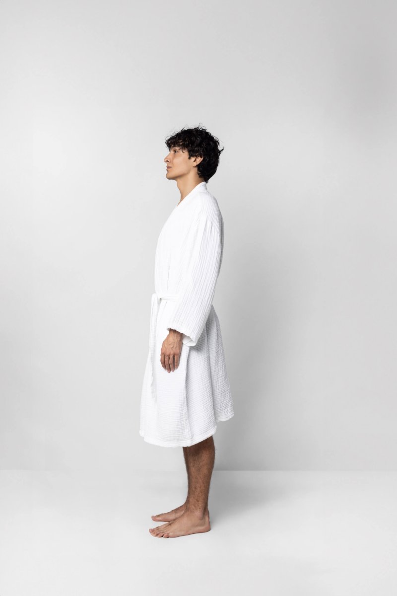 This kimono robe combines the breathability of 4-ply muslin gauze with the durability of 100% long-staple Turkish cotton. The lightweight construction makes it ideal for year-round comfort, while the relaxed fit ensures unrestricted movement during your downtime.