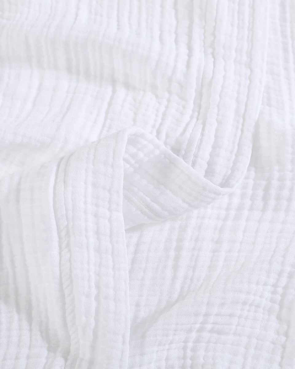 The 4-ply gauze fabric provides exceptional softness without weight, creating an airy feel against your skin. Turkish cotton's natural absorbency and breathability regulate temperature, keeping you comfortable whether you're fresh from the shower or settling in for the evening.