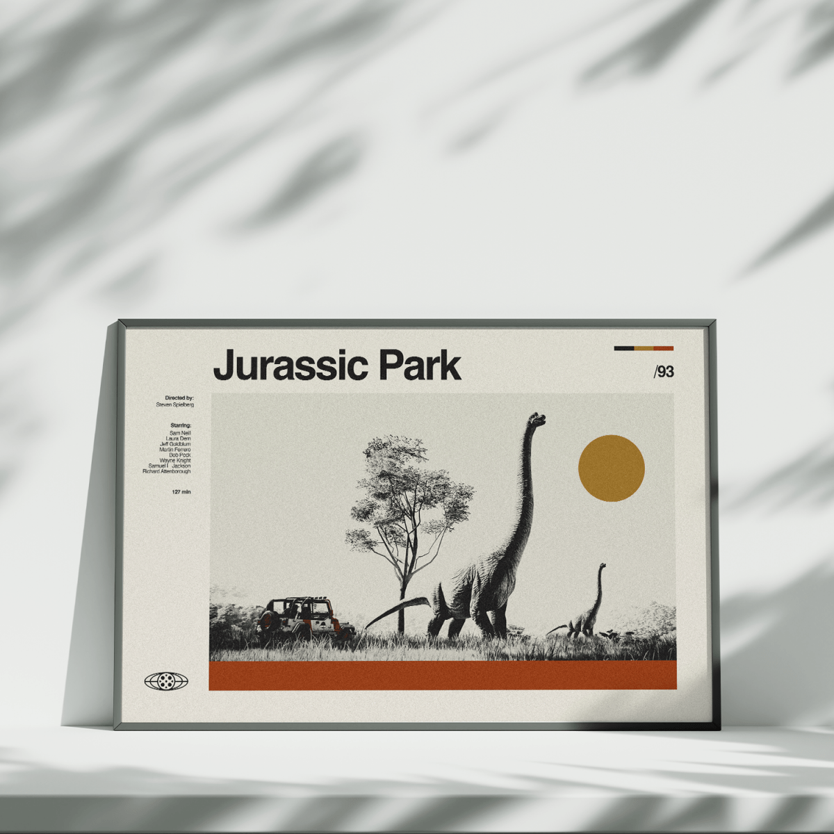 This Jurassic Park landscape art print, featuring a vintage aesthetic, is professionally printed on high-quality archival matte paper. With its vibrant colors and high contrast, this piece is a perfect gift for fans of the movie series.