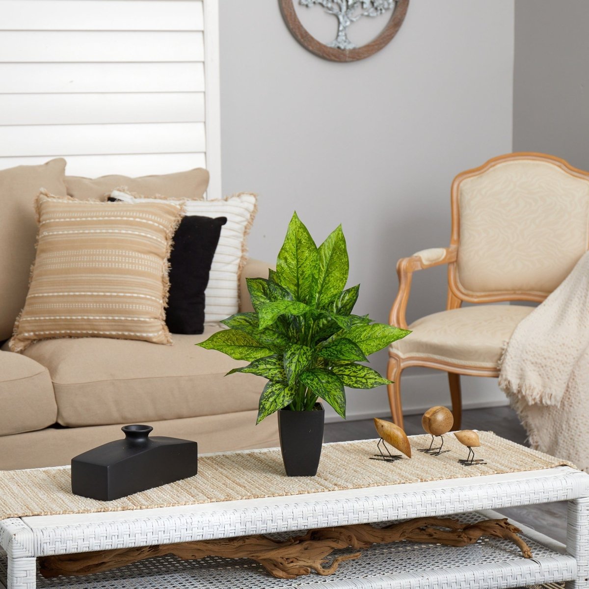 This 21-inch artificial Dieffenbachia plant delivers the visual appeal of the popular dumb cane houseplant without the toxicity concerns. The faux plant features large, glossy leaves with intricate, detailed patterns that accurately replicate the natural variegation found in real Dieffenbachia specimens.