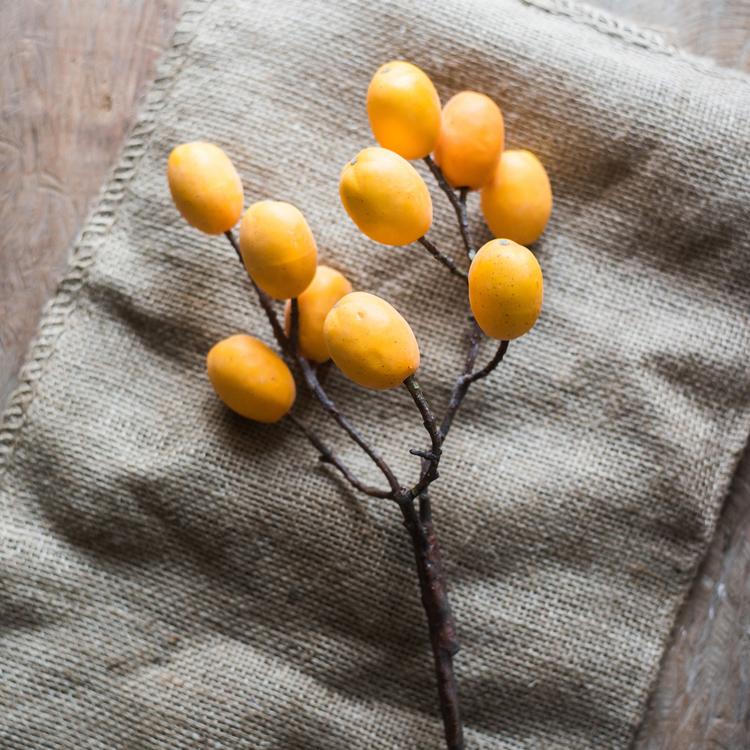 This 26-inch artificial pipa fruit stem brings the exotic beauty of loquat branches into your space without maintenance. Each stem features approximately 14 individual pipa fruits, meticulously crafted to replicate the natural appearance of this Asian botanical favorite.