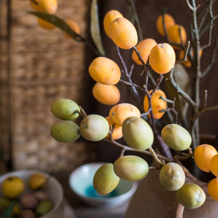 The 25.6-inch height makes this stem ideal for floor vases, tall arrangements, or as a standalone accent piece. Use multiple stems together for fuller displays, or combine with other artificial botanicals for mixed arrangements. The realistic fruit clusters work well in Asian-inspired interiors, tropical themes, or as unexpected elements in contemporary spaces.