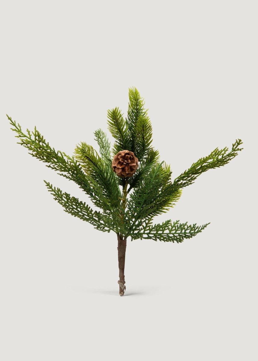 Regular price $9.95Effortless and elevated winter home decorating is easy to achieve with ultra-realistic artificial holiday greens that remain looking fresh all season long. Style a festive Christmas greenery arrangement with this faux evergreen and pine cone pick that features a mix of natural-looking pine foliage. Then, showcase your pine centerpiece on a mantel or a table in your living space to create a simple but beautiful seasonal look that enhances minimalist interior design.