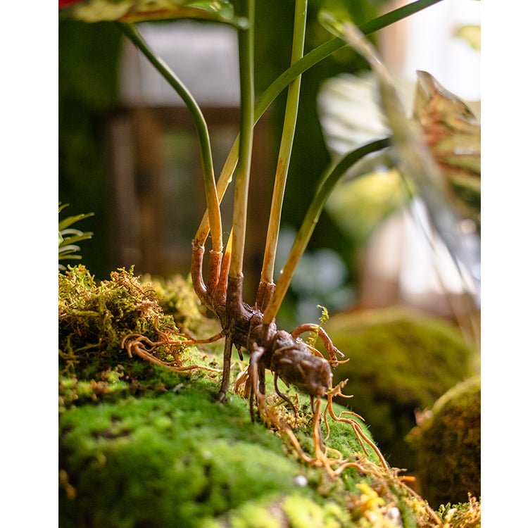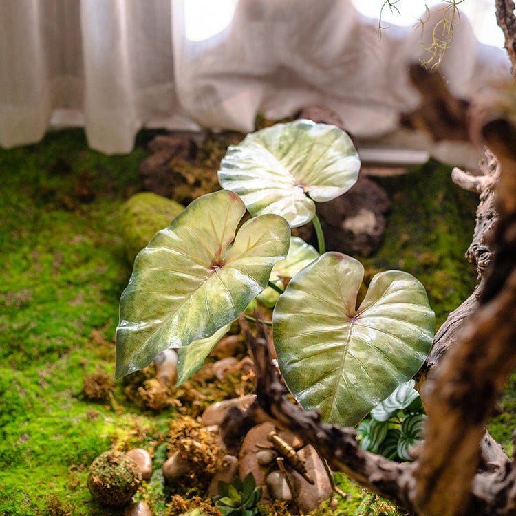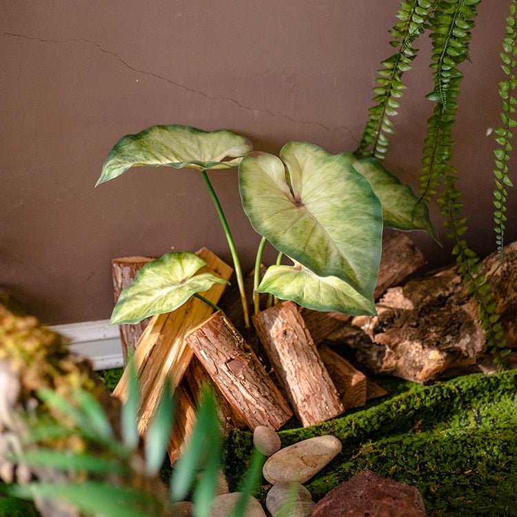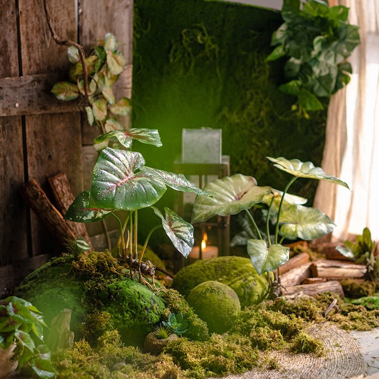 Crafted from high-quality PE (polyethylene) and plastic materials, this artificial Alocasia replicates the distinctive large leaves and natural growth pattern of live Alocasia plants. The mixed green coloring mimics the varied tones found in real foliage, creating depth and visual interest. The rooted base design provides stability while enhancing the plant's realistic presentation.