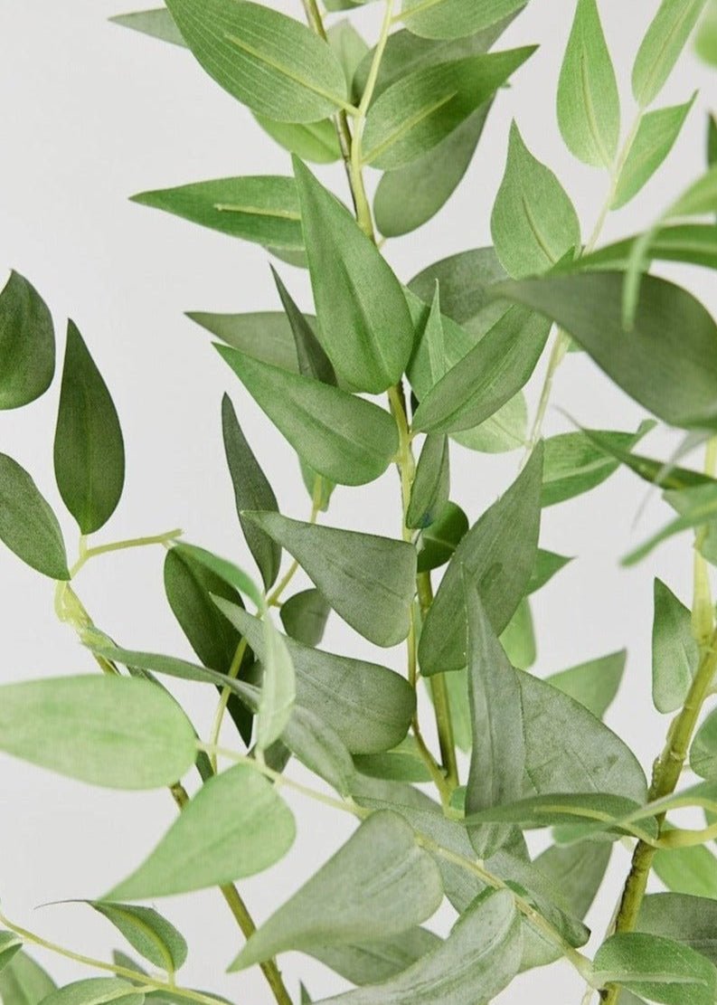 This 46-inch artificial Italian Ruscus spray features realistic grey-green foliage that brings natural texture to any space. The spray includes multiple stems with leaves measuring 1.75-2.75 inches long and .75-1 inch wide, creating a full, authentic appearance.