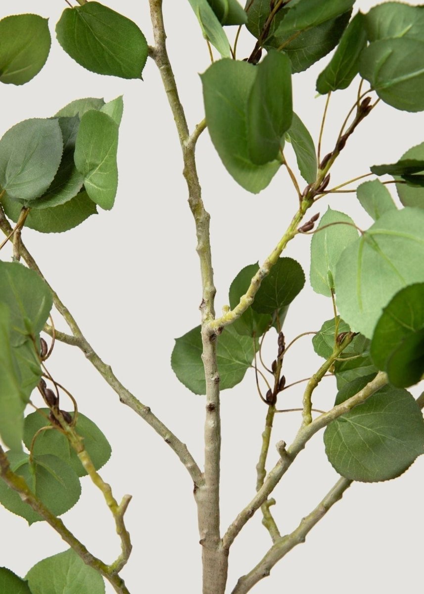 This 51-inch tall artificial aspen branch features hand-wrapped construction with full, lush silk leaves designed to replicate the natural beauty of aspen foliage. The fully wired stem allows for complete flexibility in shaping and positioning, making it adaptable to any vase or arrangement style.