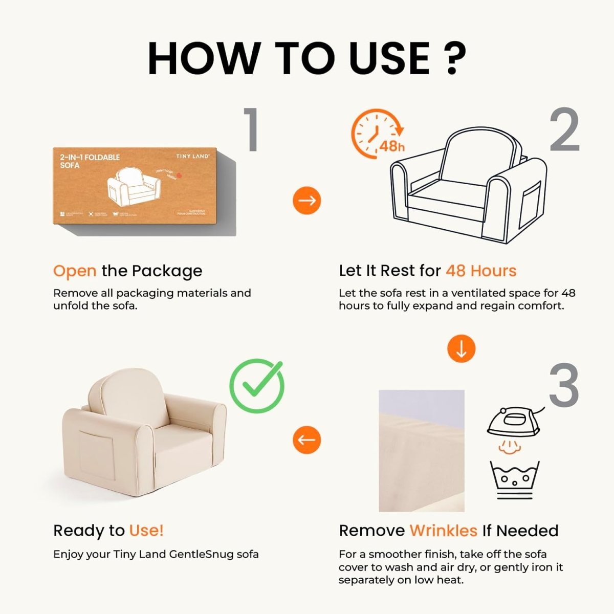 The Tiny Land GentleSnug transforms from couch to bed in seconds. Built for storytime, TV time, naps, and everyday lounging, this convertible kids sofa adapts to however your child wants to relax.