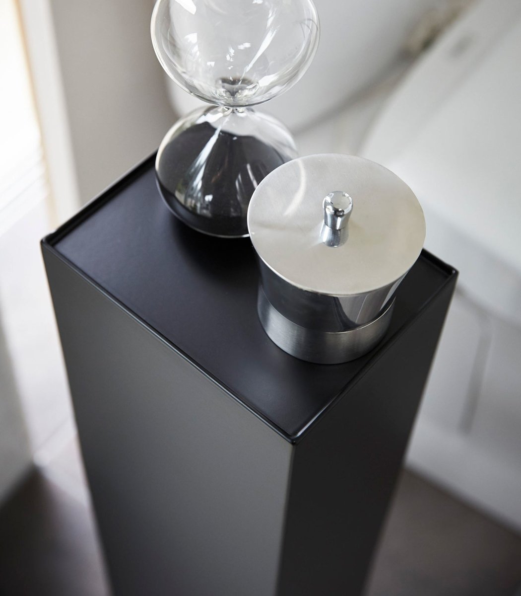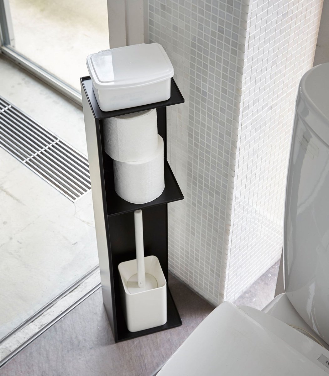 Add a boost of storage to any tight corner and vertically store and hide away toilet paper, brushes, and cleaning products to keep your space tidy and tasteful. Like magic, the storage shelves disappear behind the front panel. The hidden storage offers your bathroom a clean, tidy, and clutter-free look.