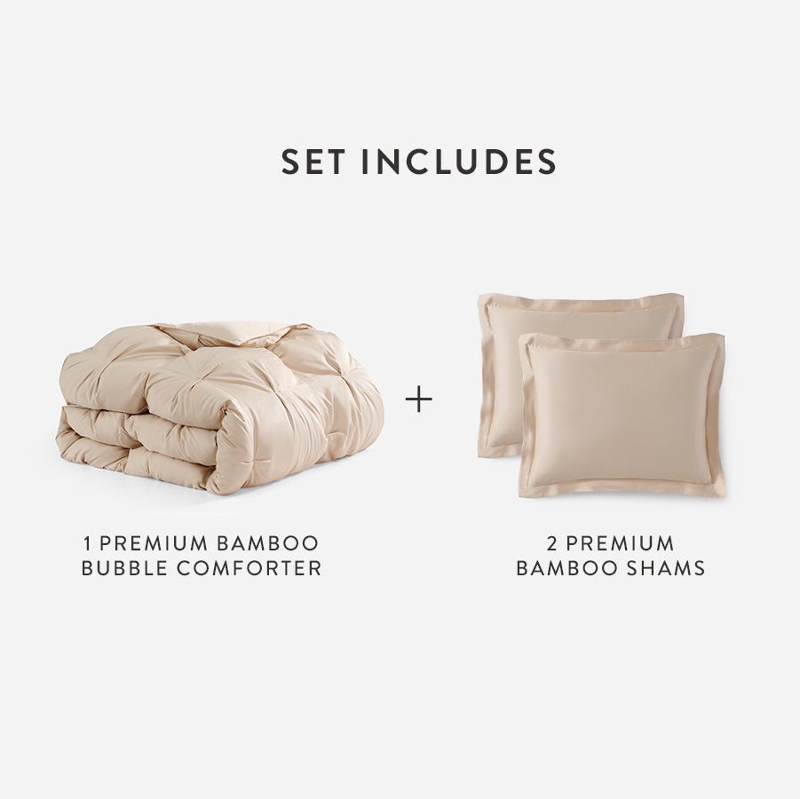 Regular price $310.50Bundle and save with this puffy, heavenly soft year-round bundle. Featuring naturally breathable, silky-smooth bed linens you’ll love to snuggle with. The best part? The items are made from viscose derived from bamboo, one of the planet’s most sustainable crops; and the comforter’s filling is made of recycled plastics (that means: less water bottles on the ocean!). As kind on the earth as they feel on your skin.