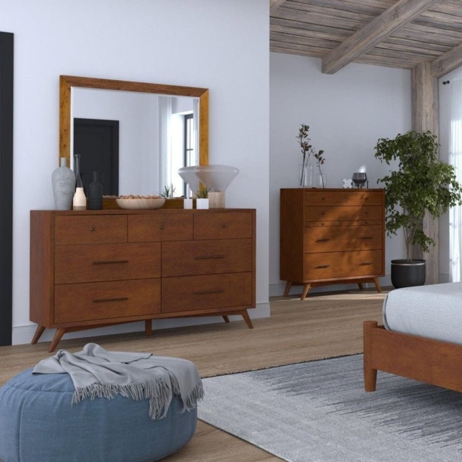 The Flynn dresser brings the iconic lines of Mid-Century Modern furniture into your home with a design that never goes out of style. Crafted from sustainably sourced solid Mahogany wood, this substantial piece is built to become a cherished heirloom that serves your family for generations.