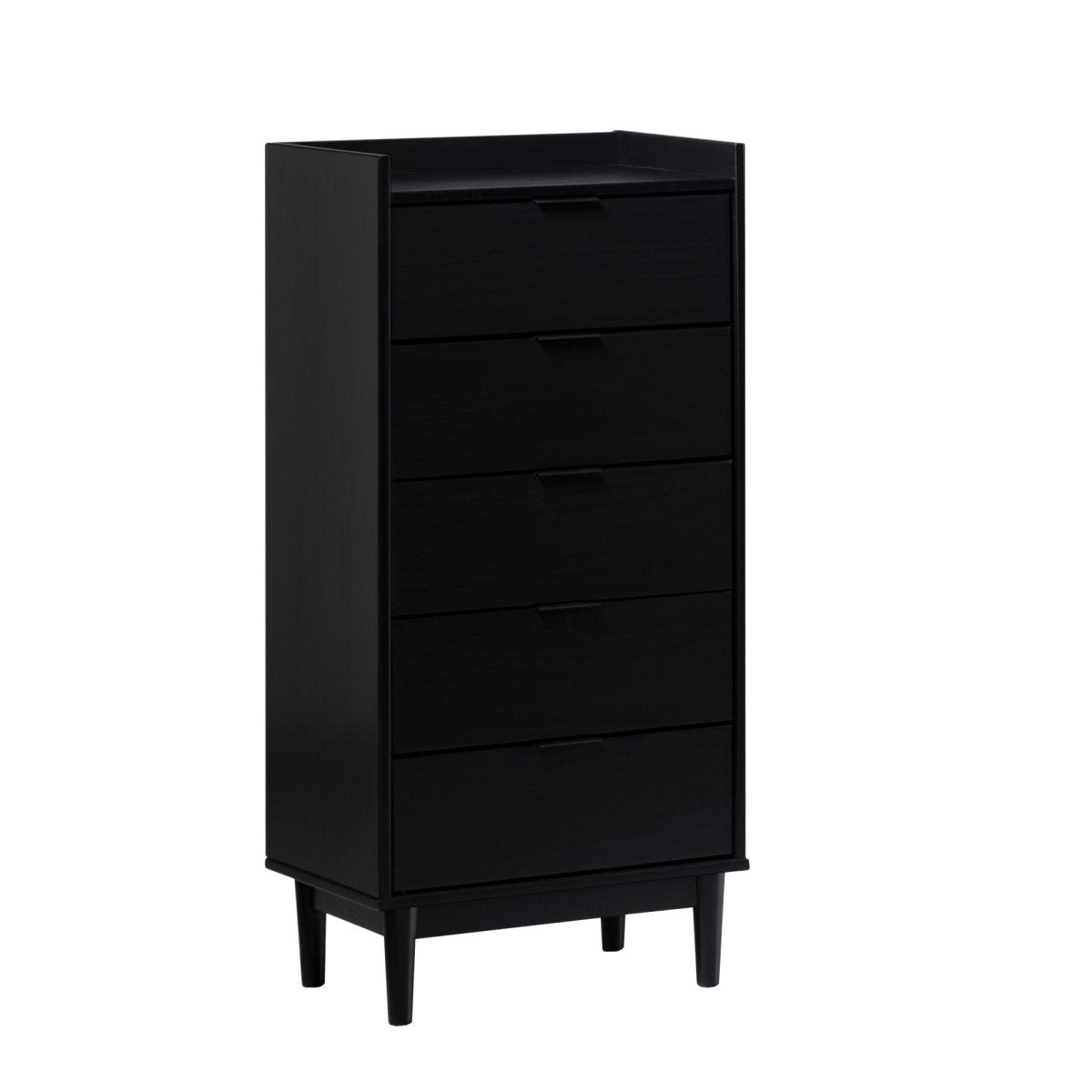 Regular price $390.00Bring timeless elegance and practical storage to your bedroom with the Lee Mid-Century Modern Wood Dresser. Crafted from solid pine wood responsibly sourced from renewable forests, this spacious dresser blends sustainability with classic design. The tray-style gallery top ensures your décor stays securely in place, while tapered round legs and sleek metal drawer pulls add a distinctive mid-century modern flair.