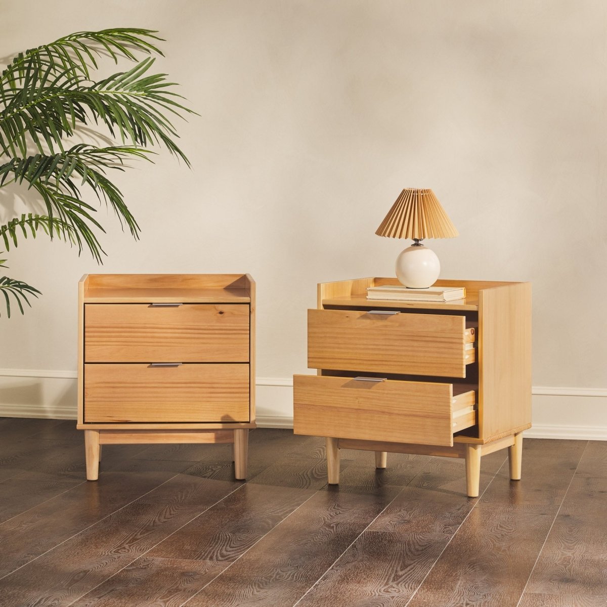 Regular price $52.00Elevate your bedroom with the Lee Mid-Century Modern Wood Nightstand, a timeless piece that blends style, function, and sustainability. Crafted from solid pine wood sourced from renewable forests, this nightstand brings natural warmth and durability to your space.