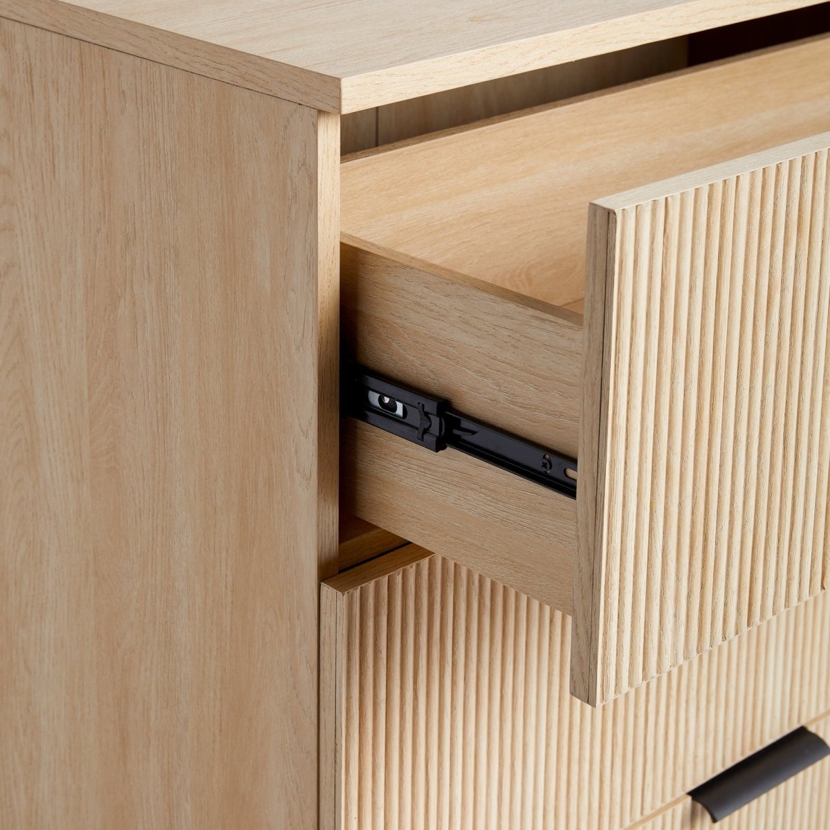 Regular price $107.00Bring the mid-century Scandinavian look into your home with this Paris Collection. The warp-resistant and durable materials ensure your dresser or nightstand will hold up to everyday use, while the Scandinavian reeded wood drawer fronts add a unique detail that elevates the design. Tab pulls and metal drawer slides make it easy to open and close drawers smoothly, and the spacious top is a great place to display art or place a lamp.