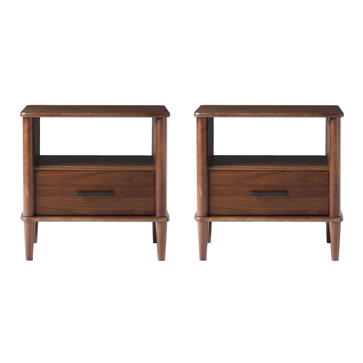 Regular price $43.00This solid wood nightstand brings timeless style to your bedroom. A spacious tabletop and open cubby offer plenty of display space for books, plants, and décor, while a single drawer on smooth wood glides is the perfect place to tuck away nighttime necessities.