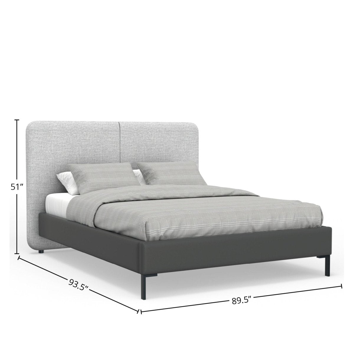 This modern low-profile bed is the epitome of style and comfort, featuring a split headboard design that adds a touch of elegance to any bedroom. The light grey linen texture headboard, grey faux leather footboard and side rails, and black finished metal legs create a beautiful and sophisticated color scheme that will complement any decor. Designed with your comfort in mind, this platform bed eliminates the need for a box spring, providing a supportive and comfortable sleeping surface. And with its sturdy metal legs, this bed will provide you with many restful nights of blissful sleep.