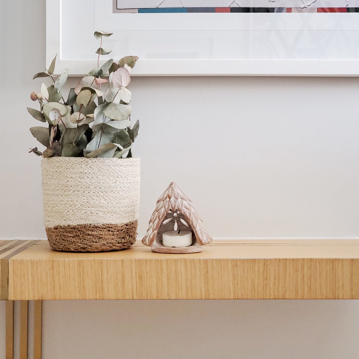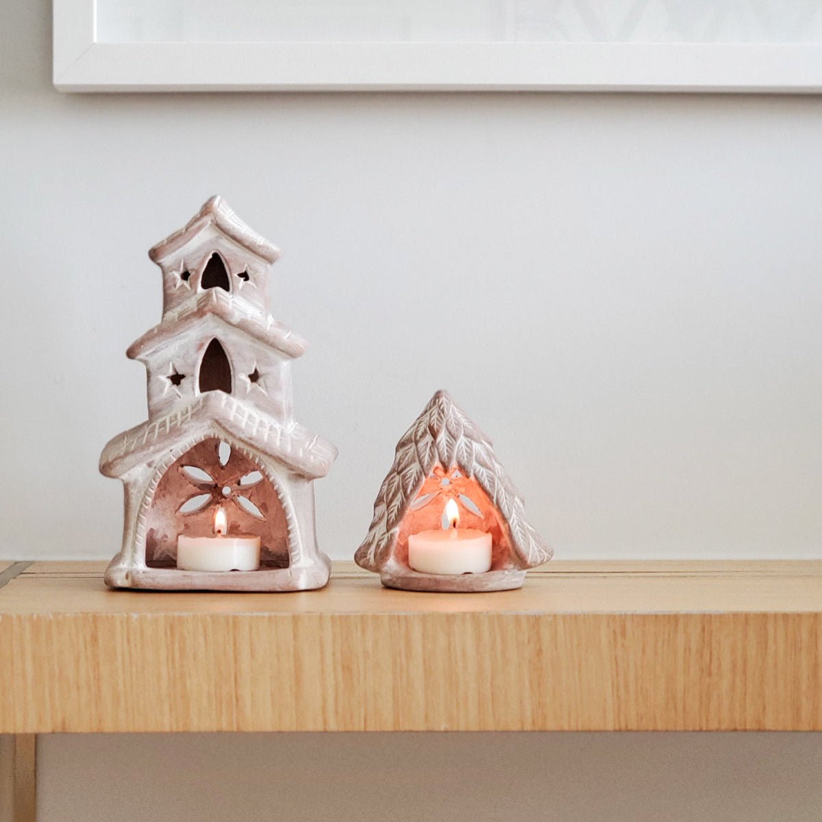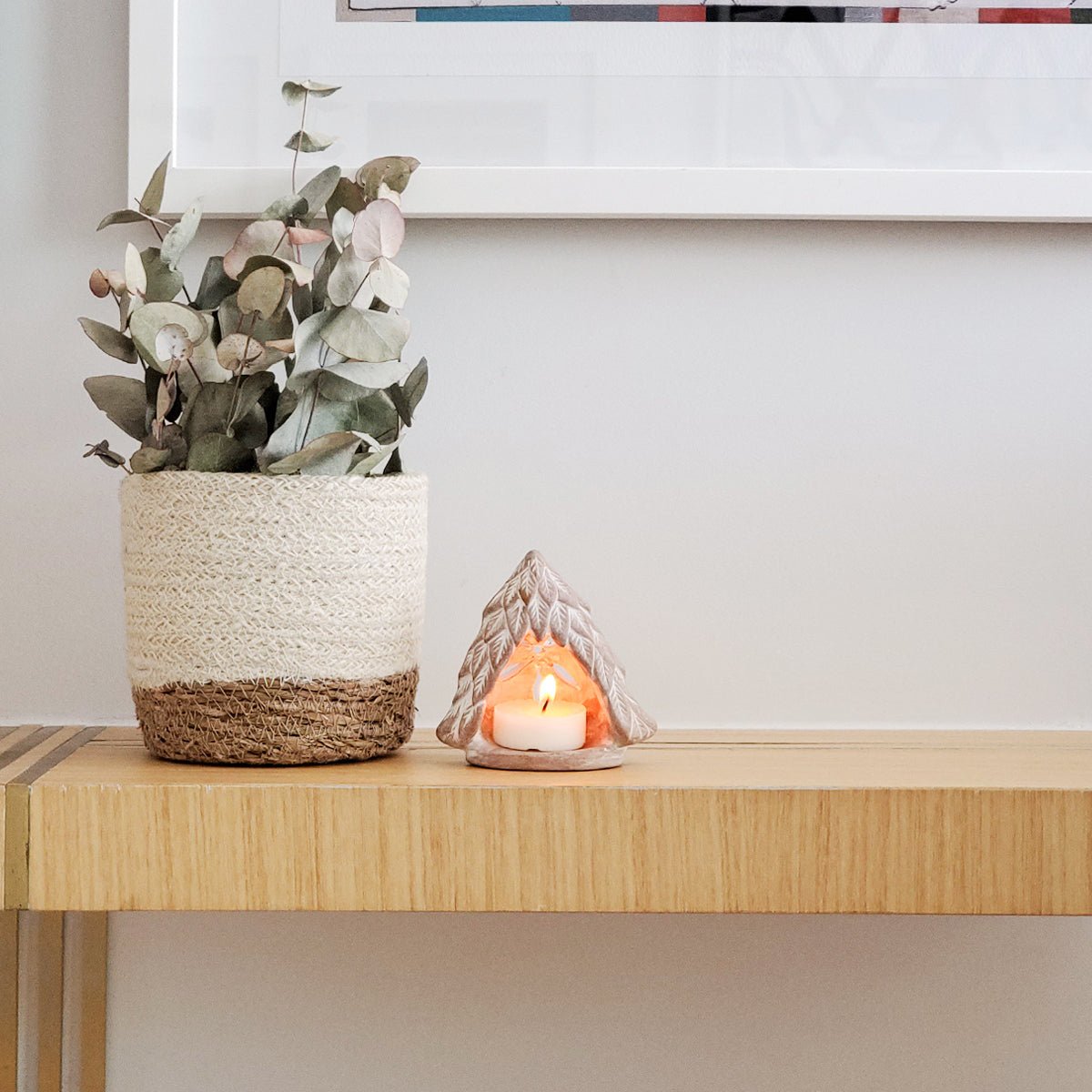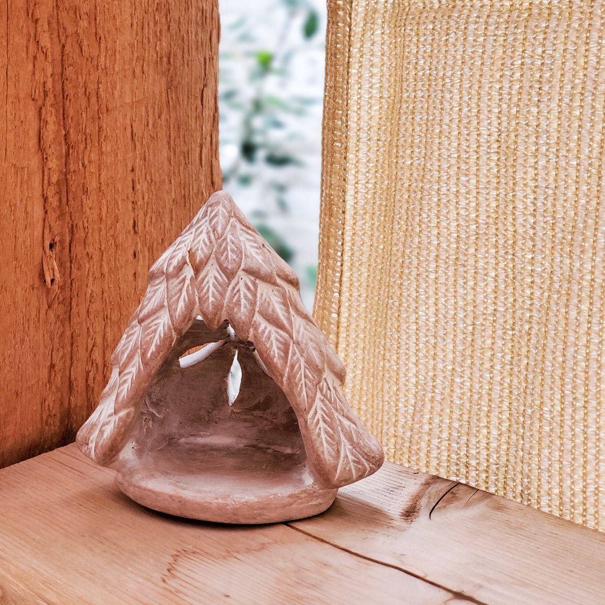 Handmade Terracotta Tea Light Holder - Tree Design Natural Clay