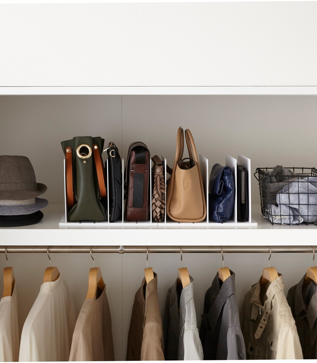 Lock the organizer into position according to the size of your bags to keep them all upright, perky, and pristine. Finally, a way to prevent your precious handbags from crushing one another in a giant heap.