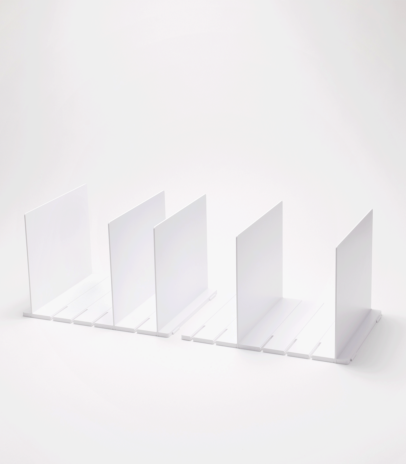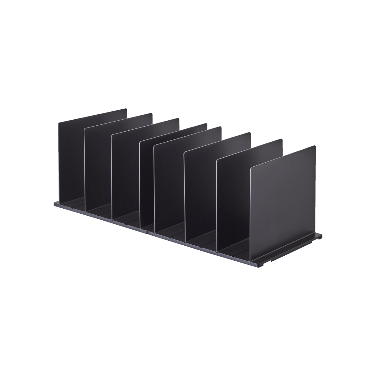 Product comes with two square bases that can be snapped together or used independently. Eight vertical dividers that can slide into the grooves found in the base are also provided.
