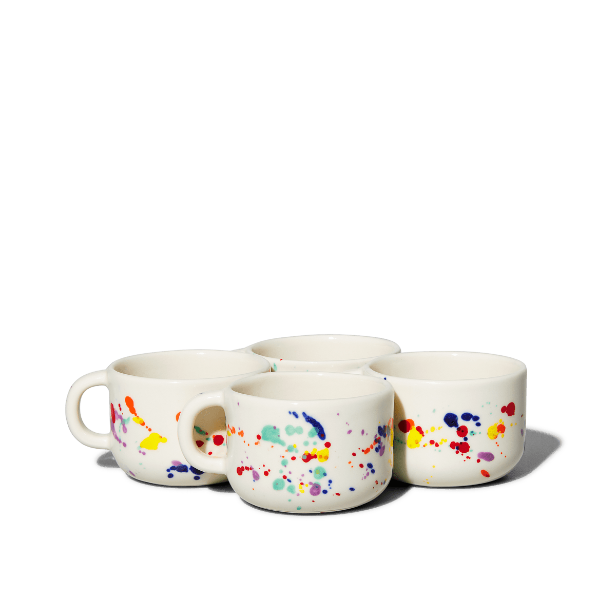 Each cup is thrown and glazed by hand using traditional ceramic techniques. The confetti pattern glaze creates unique variations across the surface, ensuring no two pieces are exactly alike. This handmade approach means you'll notice subtle differences in glaze application and form—characteristics that make handcrafted ceramics special and one-of-a-kind.