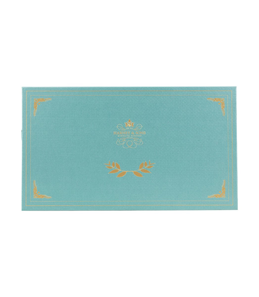 Each tea chest includes a curated selection of 8 different tea flavors from Harney & Sons Fine Teas. With 4 sachets per flavor, you'll have 32 total wrapped sachets to enjoy. The selection represents the finest teas from the Harney & Sons collection, ensuring a wonderful tasting experience across multiple tea varieties.