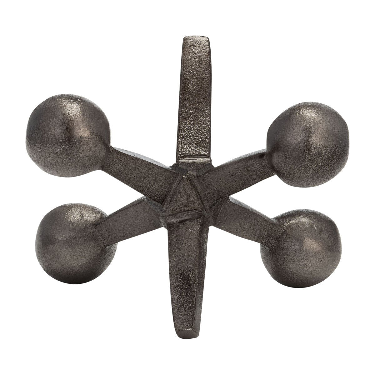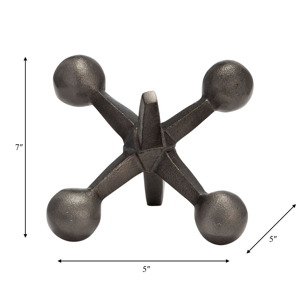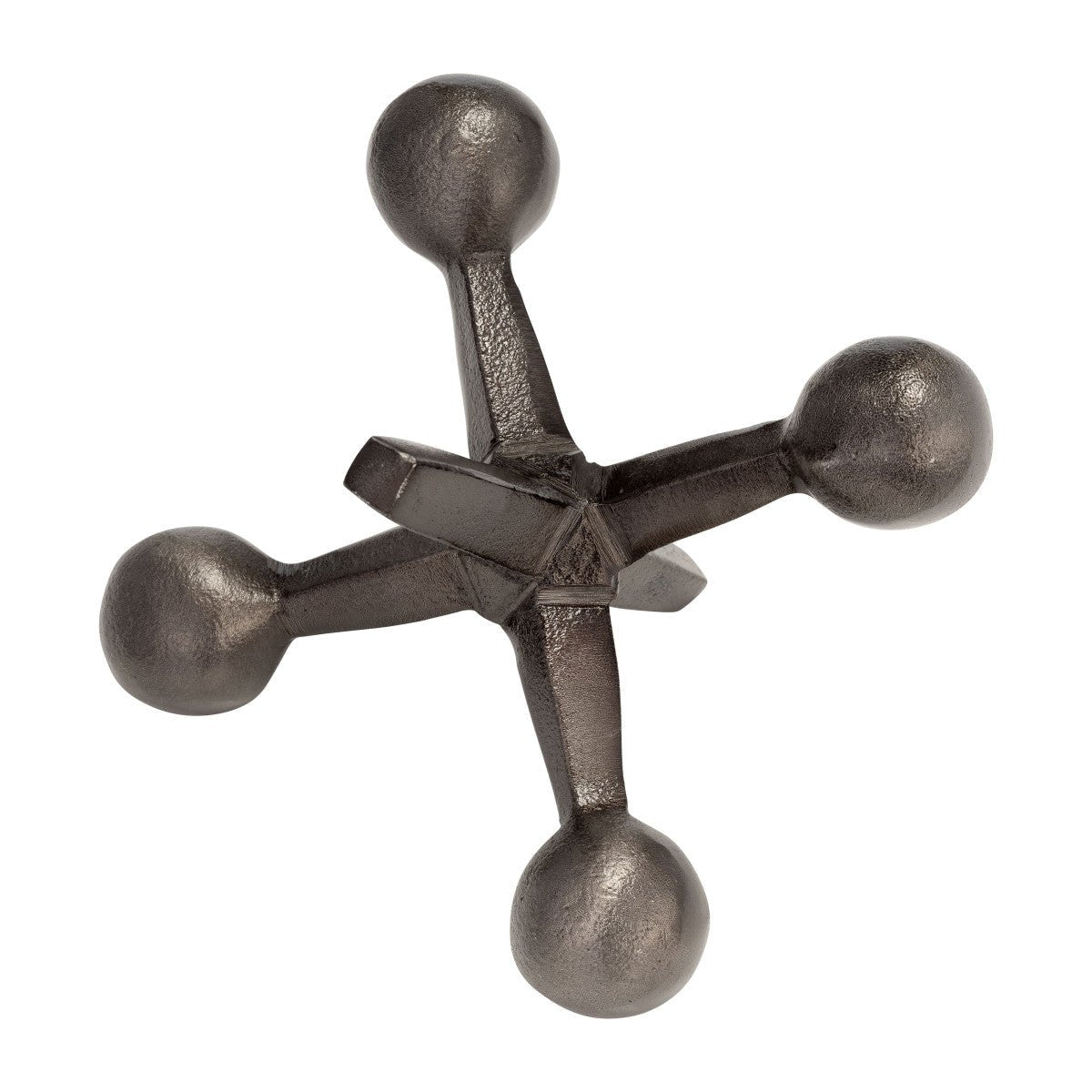 This decorative jack sculpture brings modern sophistication to your interior spaces with its geometric form and refined gunmetal finish. Constructed from durable aluminum, this 5" tall accent piece features clean lines and a sculptural silhouette that works as both functional decor and artistic statement.