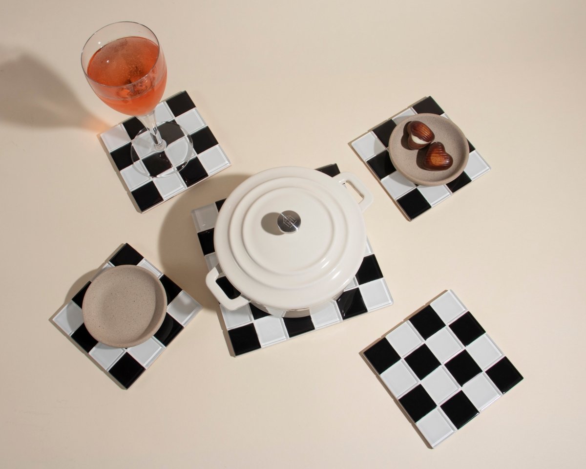 Use this versatile tray on your coffee table to hold drinks and remotes, on your vanity as a jewelry organizer, or in your kitchen as a functional trivet. The monochrome checkered design complements both modern and traditional interiors, making it an adaptable accent piece for any room.