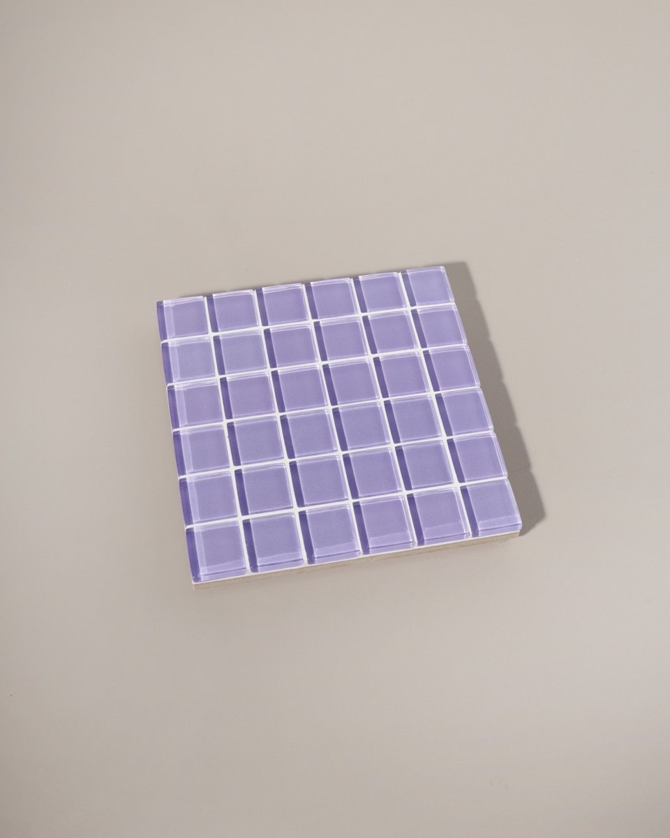 Crafted from durable, heat-resistant glass tiles, this 5.5" square tray safely holds hot beverages and soup bowls while serving as a stylish display for jewelry, candles, and decorative items. The heat-resistant properties make it practical for everyday use, while the lilac color adds a soft, sophisticated touch to any room.