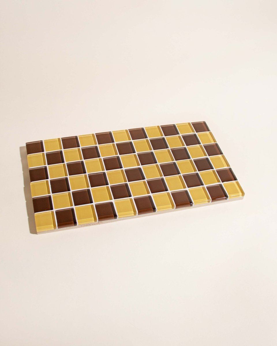 Care for your tray by wiping clean with a soft cloth. Avoid soaking or placing in the dishwasher to preserve the integrity of the glass tiles and maintain the tray's appearance over time.