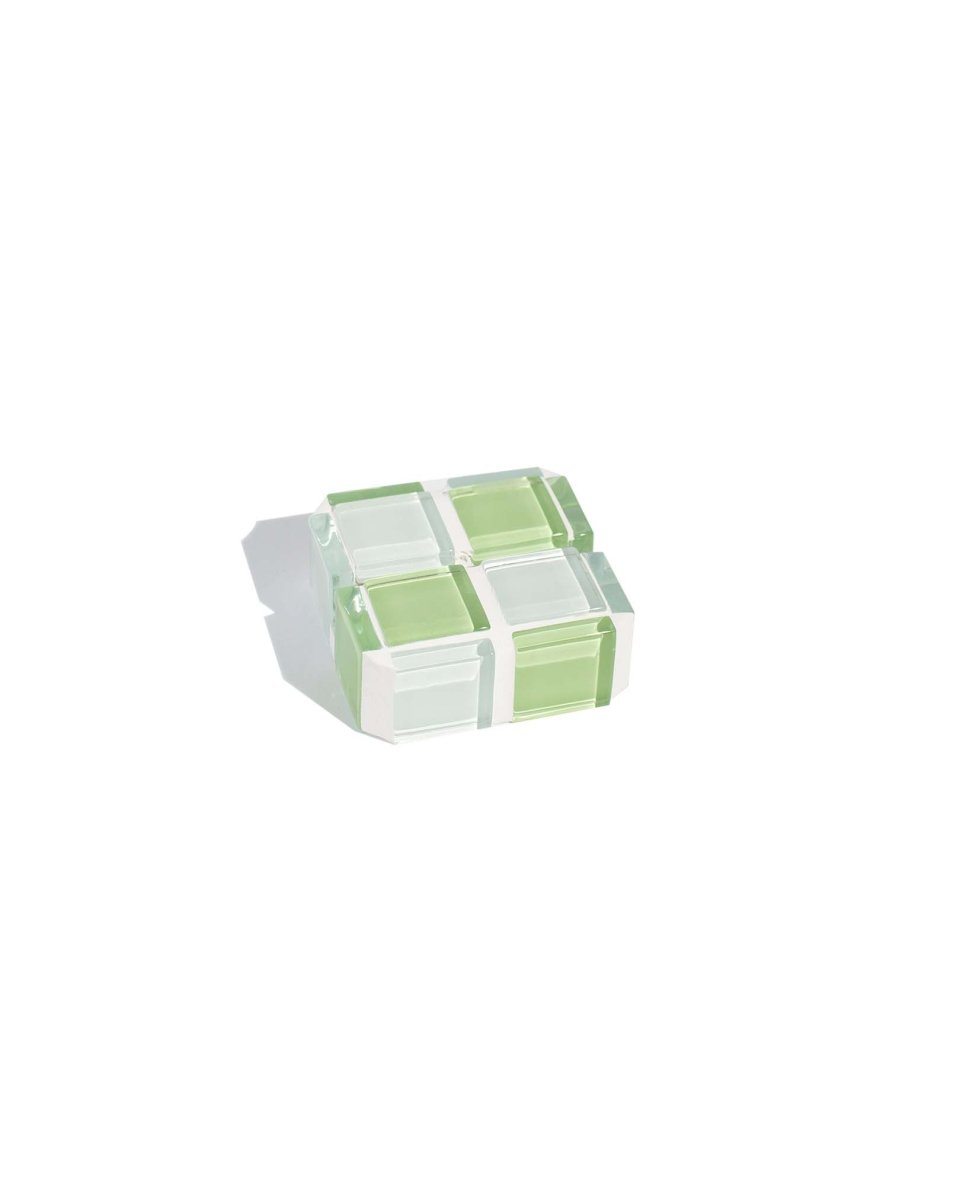The glass tile construction provides durability and a smooth surface that complements the natural wood base. Each stand is handcrafted, resulting in slight variations in color and texture that make every piece unique. The pistachio green color adds a subtle pop of color to desks, shelves, event tables, or office spaces.