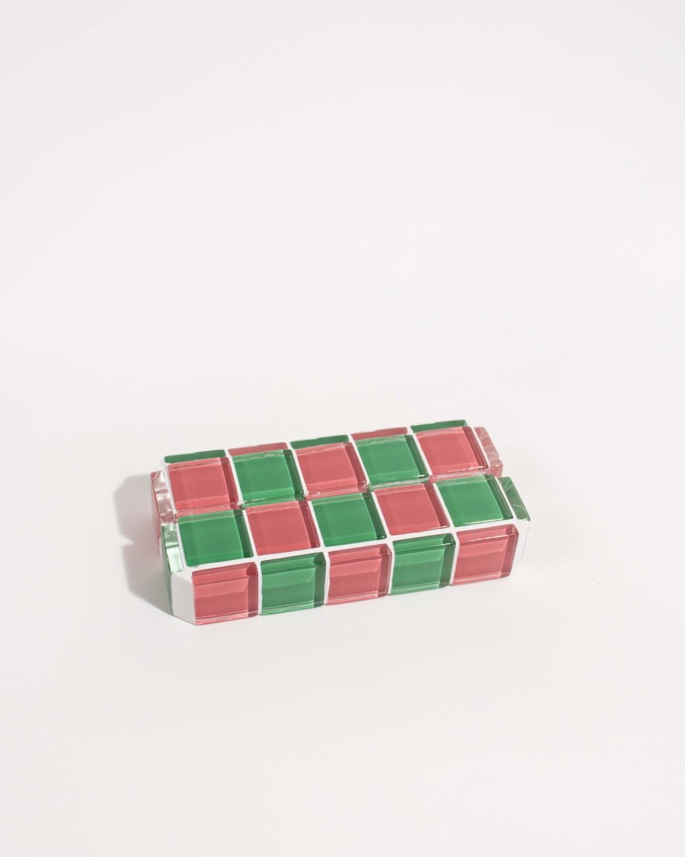 Whether organizing your home office, decorating for the holidays, or setting up special events, this glass tile display block adapts to various environments. The festive red and green color scheme makes it particularly suitable for seasonal decoration while remaining functional year-round.