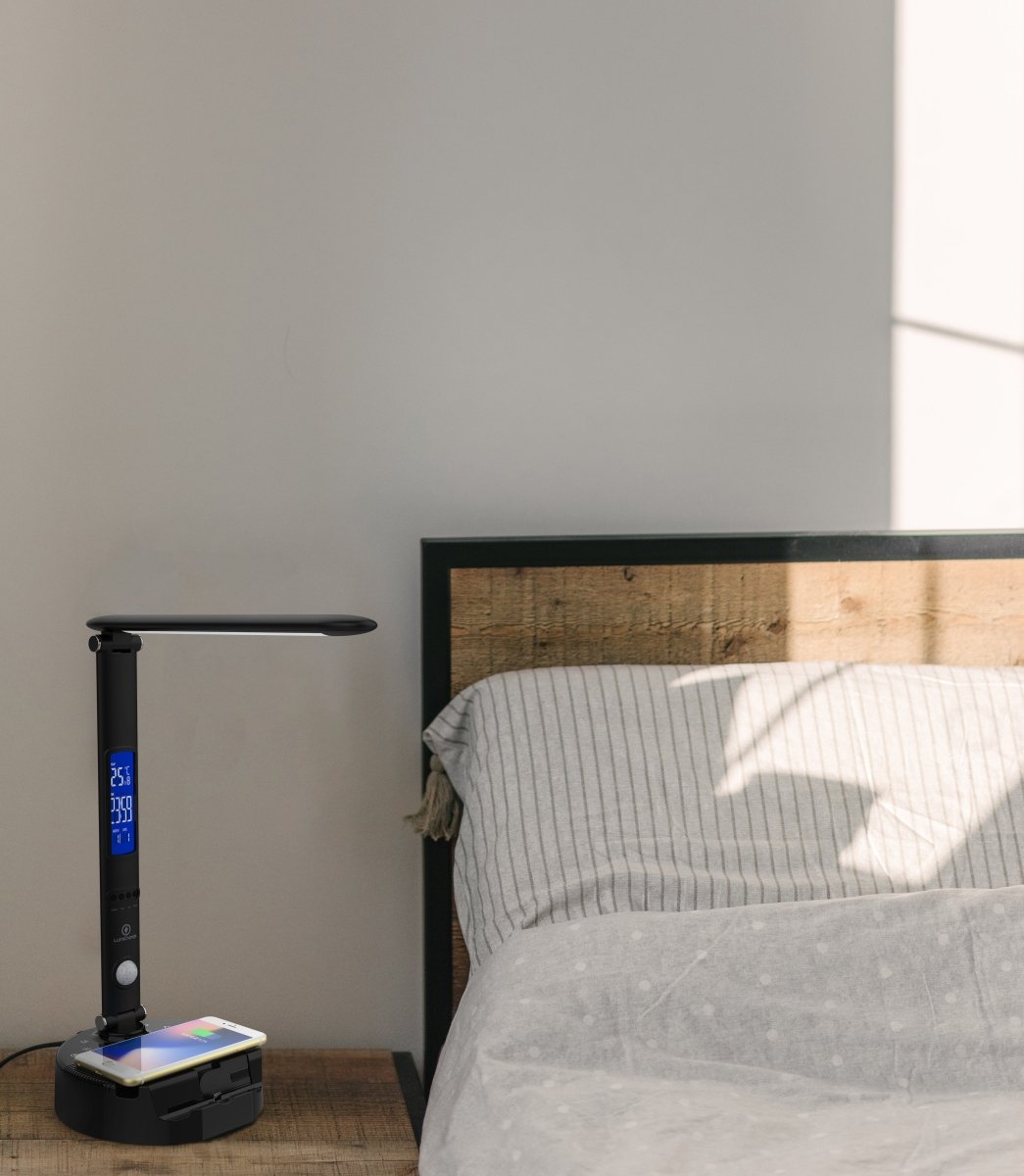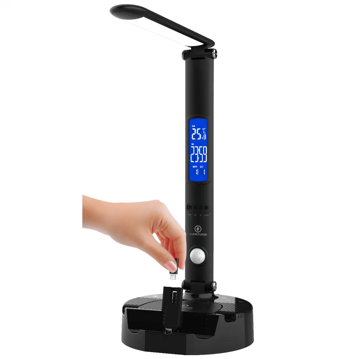 Regular price $79.99The Lumicharge III combines essential workspace technology into one sleek device. This multi-functional desk lamp integrates LED lighting, wireless charging, Bluetooth audio, and smart controls to reduce desktop clutter while keeping your devices powered and accessible.