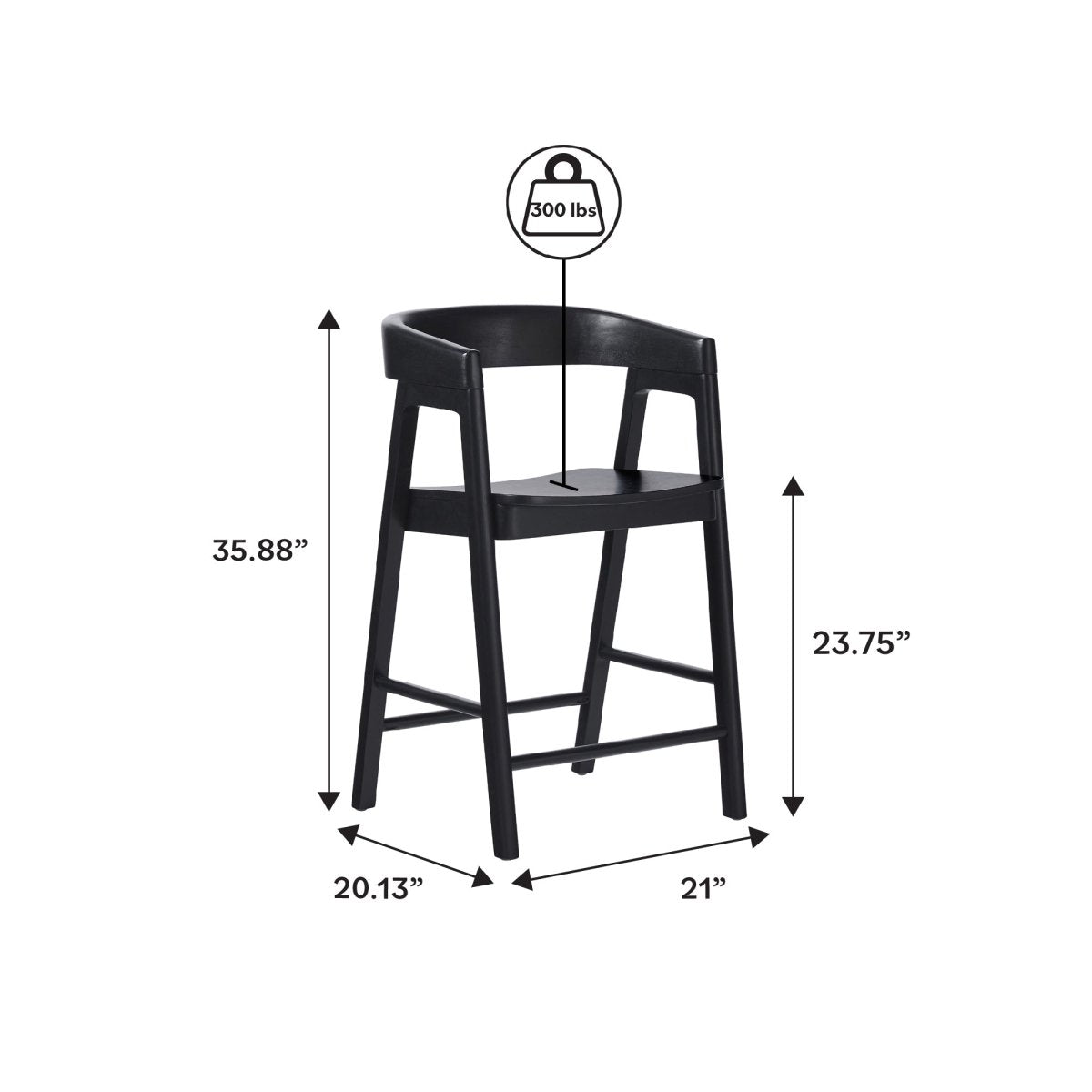 Walker Edison Ezra Rubberwood Counter Stool - Curved Back Armrests 35.88