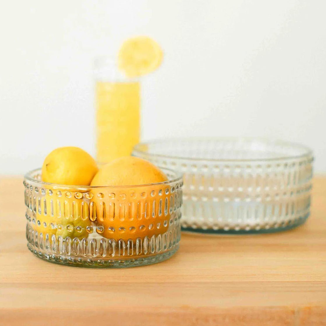 With a 27-ounce capacity, this glass bowl accommodates cut fruits, vegetables, dips, snacks, and appetizers. The 3-inch height provides adequate depth for various serving applications while maintaining a compact footprint on your table or countertop.