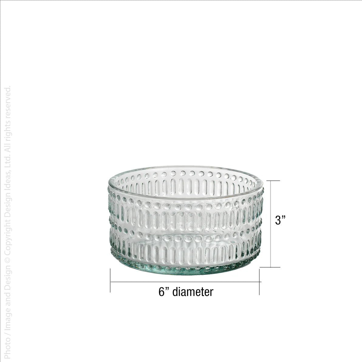 The Morse™ Glass Serving Bowl combines functional design with sustainable materials. This 6-inch diameter bowl is crafted from approximately 50% recycled glass, offering an eco-conscious choice for your serving needs.