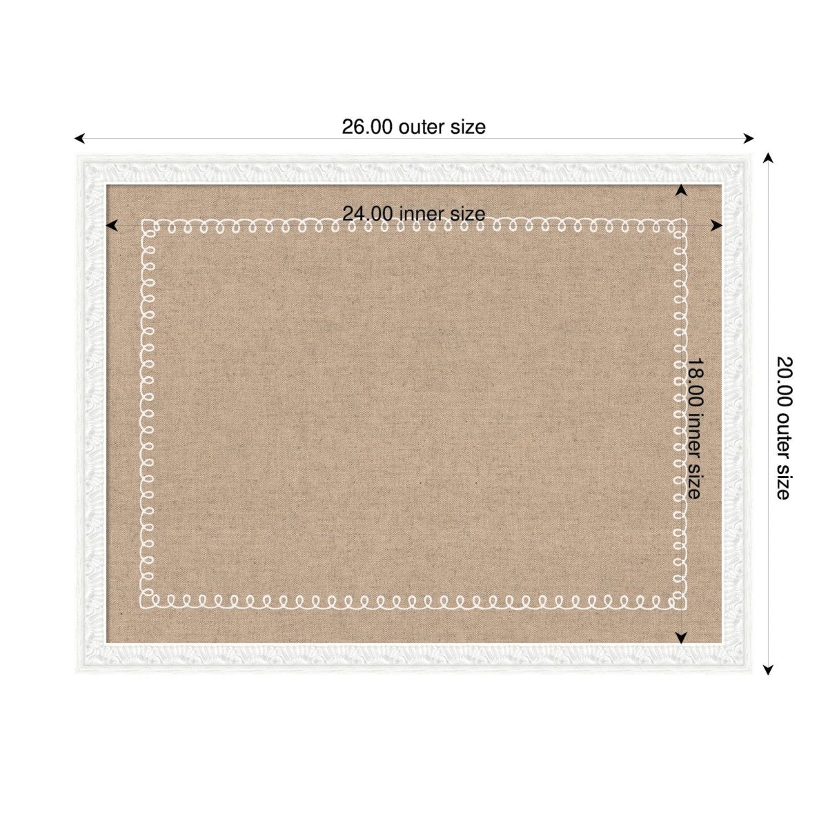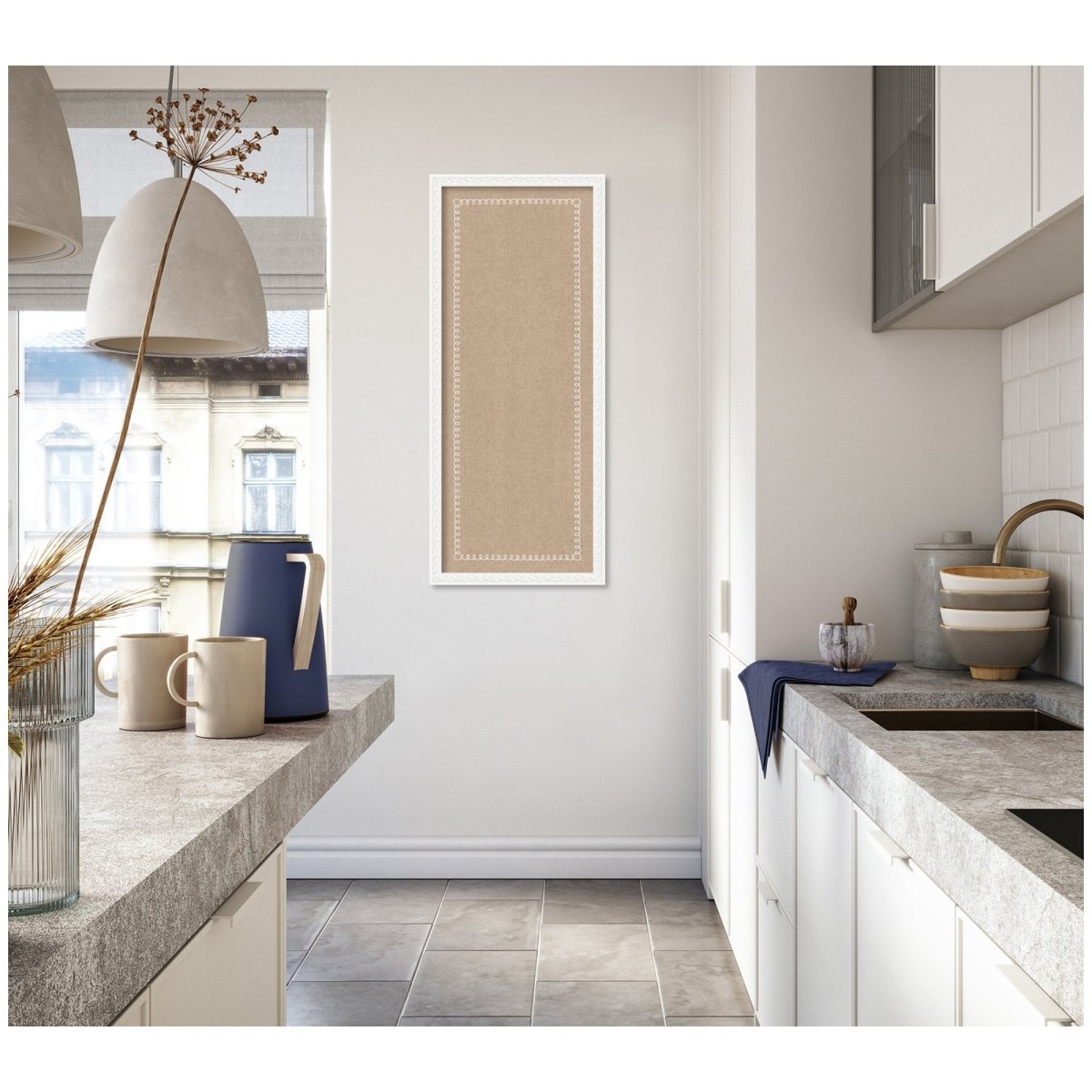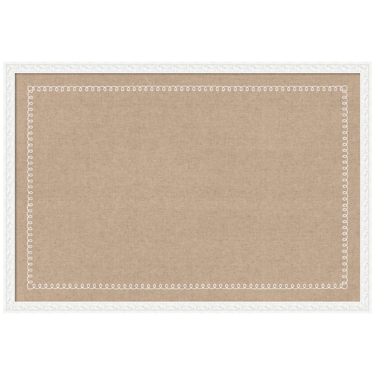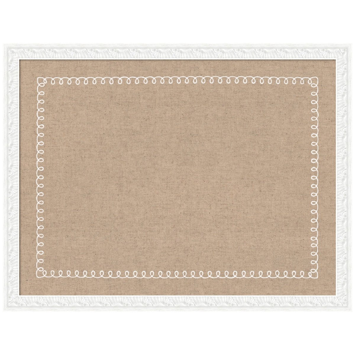Elevate your walls with a pinboard that feels as refined as the rest of your décor. A soft linen textile ground is framed by a delicate white scalloped border — feminine, elegant, and effortlessly chic. Whether you're pinning cherished photos, managing a household, or curating a vision board, this framed bulletin board makes every wall moment feel considered.