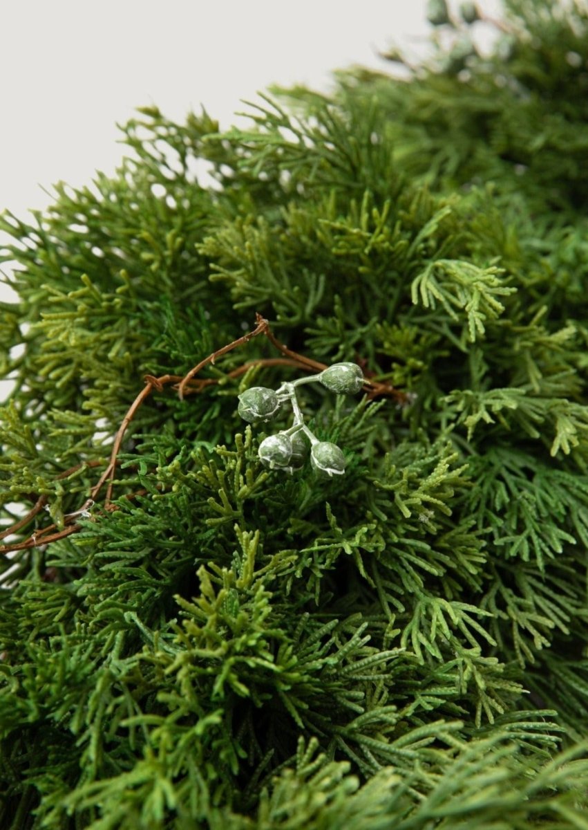 This artificial wreath works in multiple locations throughout your home. Hang it on entry doors, interior walls, or position it above a fireplace mantel. The realistic appearance of the cedar and juniper foliage brings natural elements indoors without maintenance requirements. Suitable for both indoor display and sheltered outdoor locations where it remains protected from direct weather exposure.