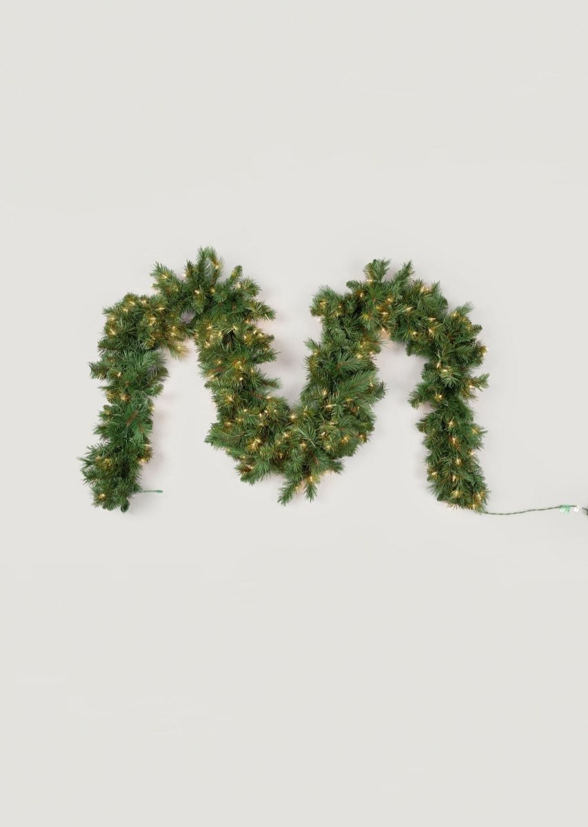 Regular price $84.75This 108-inch artificial Douglas Fir garland brings authentic holiday charm to your home with its realistic appearance and built-in warm white LED lighting. Measuring 9 feet long and 12 inches wide, this pre-lit swag features 336 individual greenery tips crafted from 100% PVC material for a full, lush appearance that mimics natural Douglas Fir branches.
