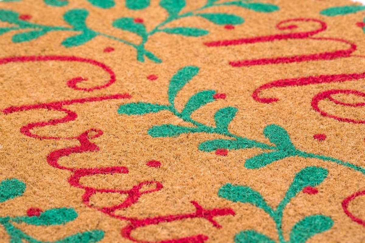 Tis' the season to spread some holiday cheer! Spice up your decor with our festive and fun Merry Mistletoe Coir Doormat.