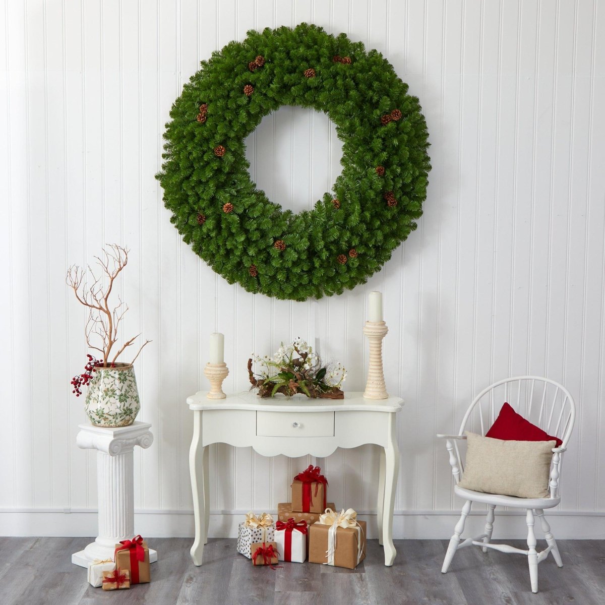 60" Pre-Lit Artificial Christmas Wreath - 280 LED Lights & Pine Cones