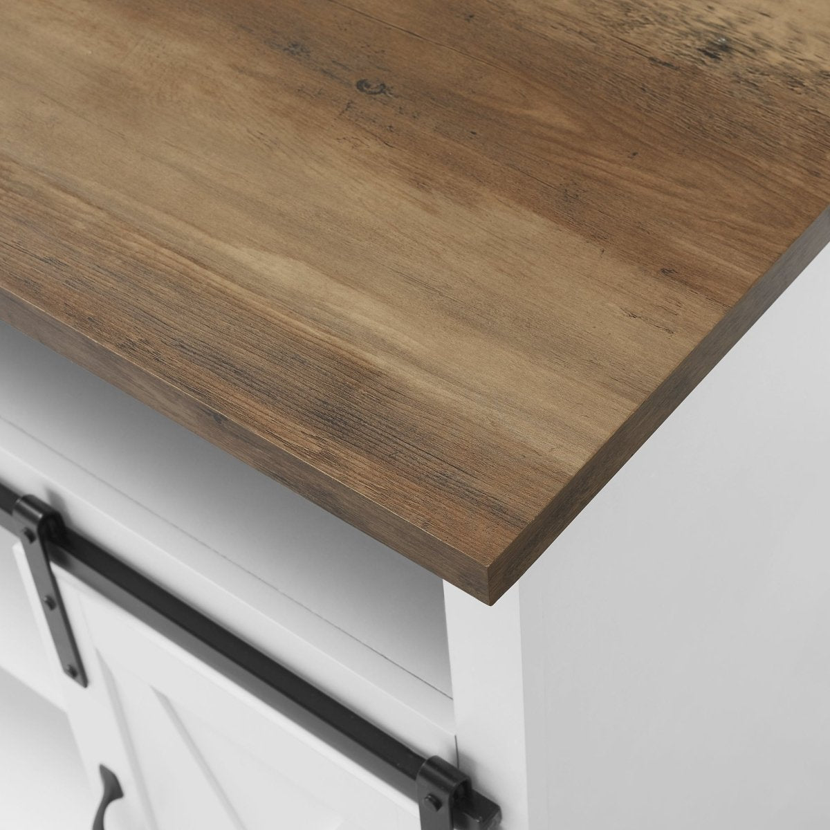 Design your home with the storage space you need by incorporating this 52-inch TV stand into just about any room. With a versatile design, this TV stand can be utilized not only as an entertainment center in your living room, but as either a buffet in your kitchen or a storage cabinet in your bedroom. With plenty of storage space provided, from the open shelving and closed shelving with sliding barn cabinet doors. Position the sliding doors in the center or sides, with your media, electronics, accessories, glassware, or décor on the shelves. Including adjustable shelves and cord management to keep your room essentials organized and in one spot. Crafted of warp-resistant MDF, durable laminate, and metal for a modern farmhouse and traditional style. Can fit up to a 58-inch TV.