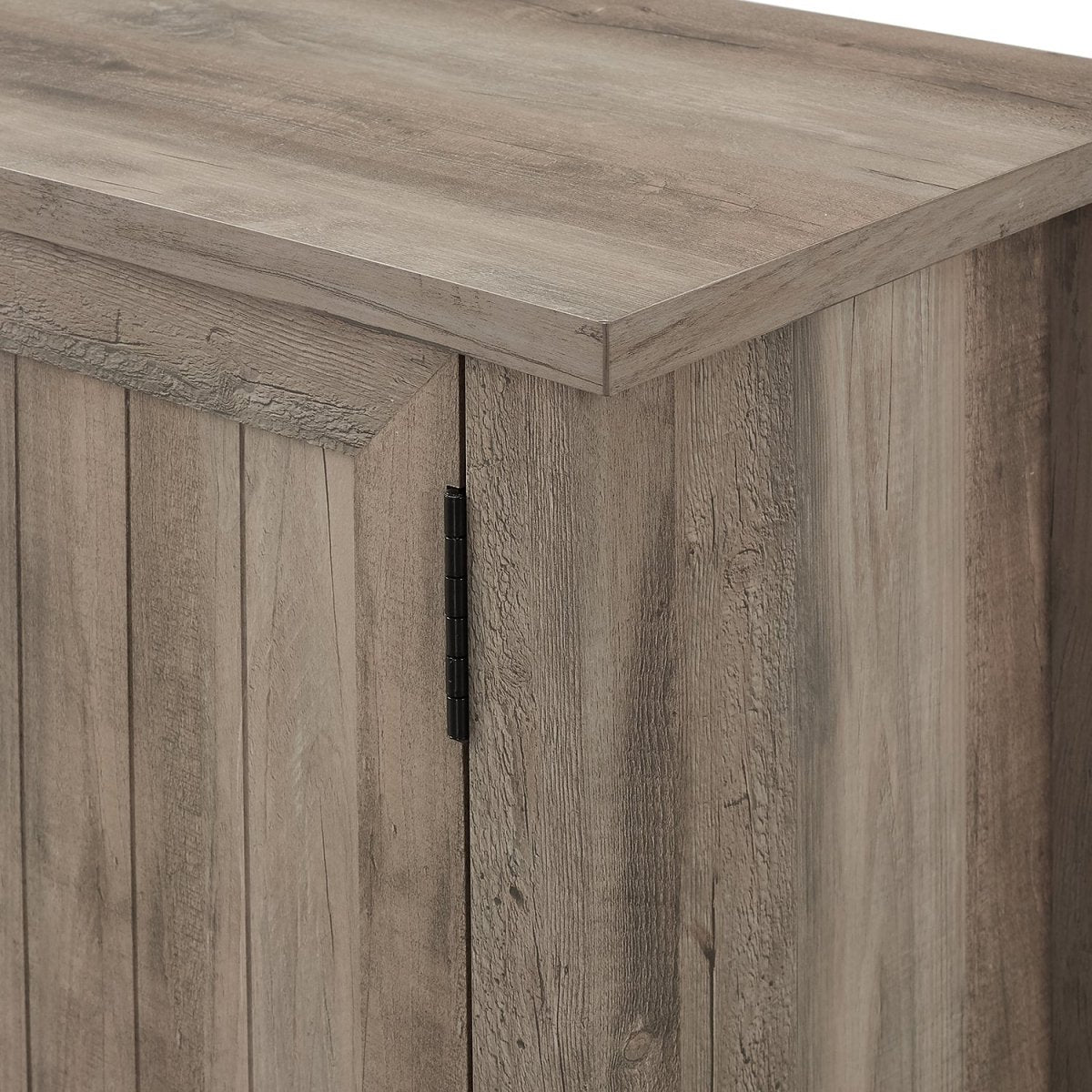 Regular price $260.00A combination of slatted cabinet door fronts and exposed metal accents create a versatile TV stand that fits well with a variety of room styles, from farmhouse to coastal. This entertainment console is made of warp-resistant MDF, a warp free wood composite, and finished with a premium multi-grain laminate ideal for everyday use. It features open and closed storage, adjustable shelves, and cord management options. This media console accommodates TVs up to 65-inches.