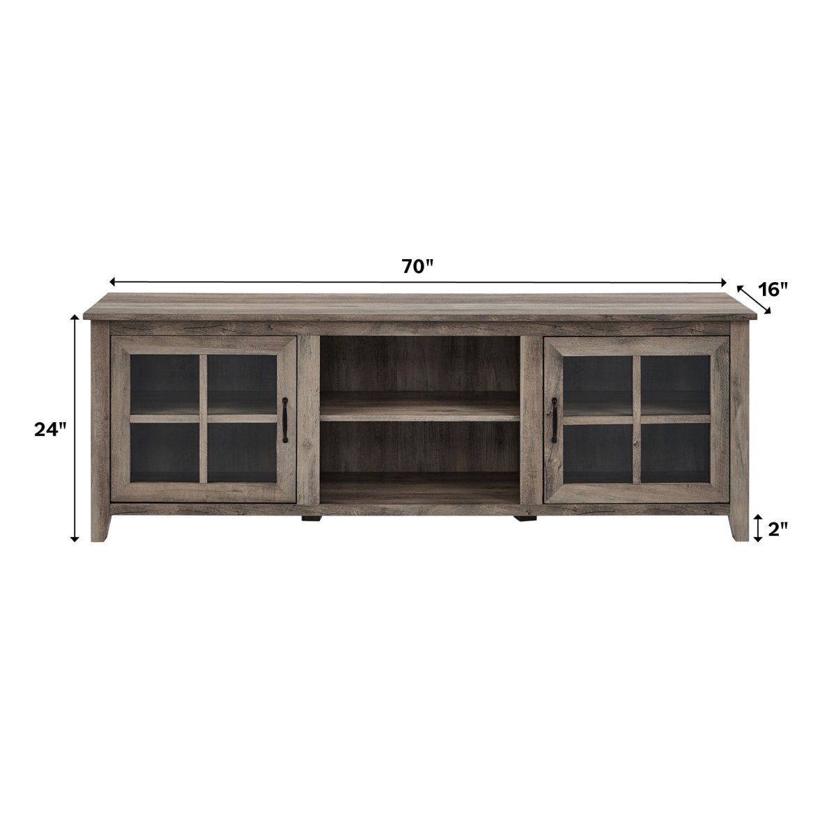 Regular price $320.00They say the eyes are the windows to the soul. That may be true, but guests will probably prefer to learn about your personality when you display your precious possessions within the windows of this traditional TV stand. Not to mention it will be a lot less creepy for people to stare through the clear tempered glass doors than your eyes. And with three adjustable shelves, this farmhouse console offers customizable storage options so you can display family photos, novels, or whatever else you feel best shows off who you are. So really, purchasing this durable 70 inch entertainment center is a win-win for you and your new friends.