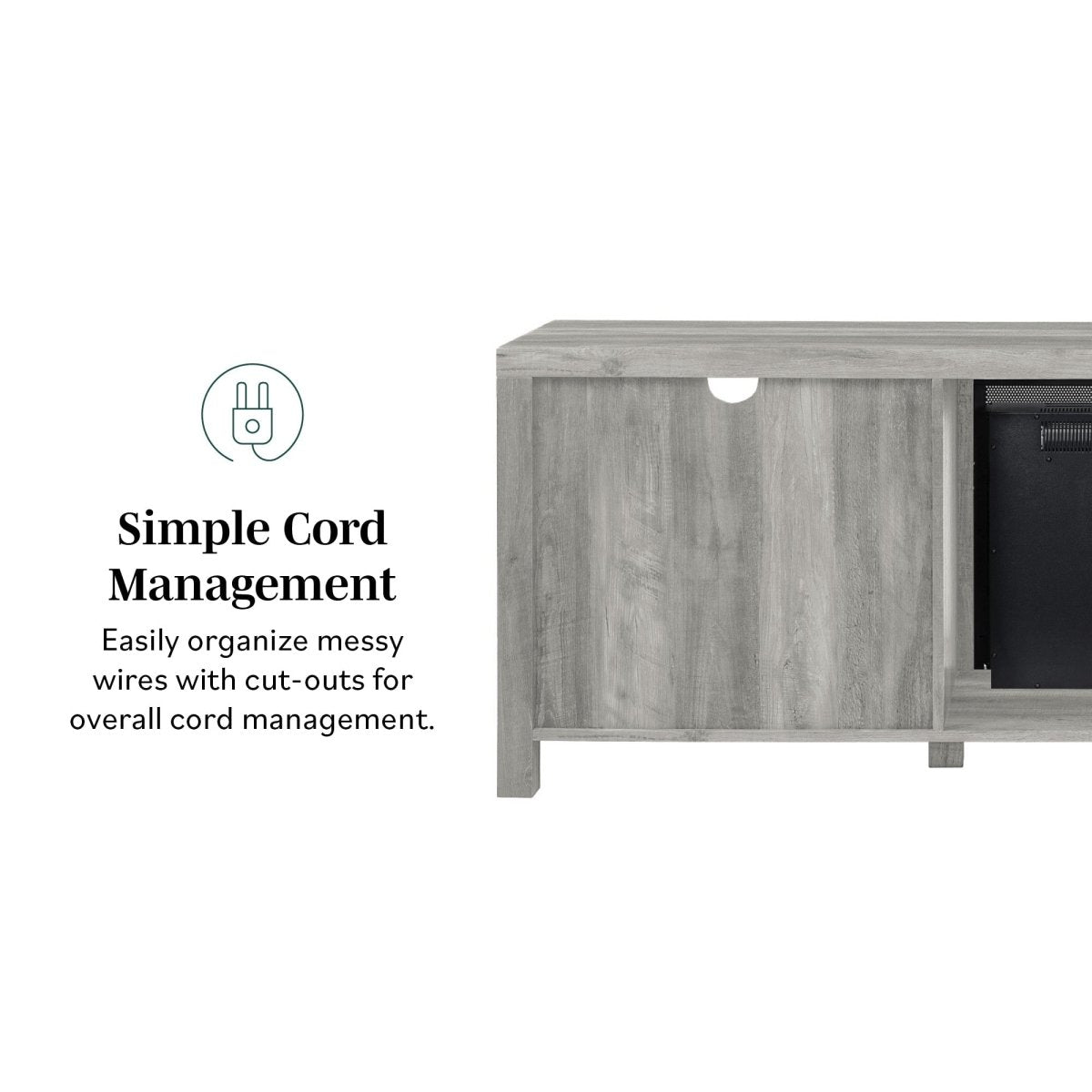 Regular price $155.00Buckle down on farmhouse charm without having to wander out to an actual barn to gather firewood thanks to the electric fireplace TV stand. The heater comes with a faux wood hearth and the ability to control the light and heat options separately on the unit so you can achieve a variety of ambiances at the flip of a switch. This rustic console with mesh metal drop door cabinets includes cord management, open and closed storage, and can accommodate up to a 85” TV.
