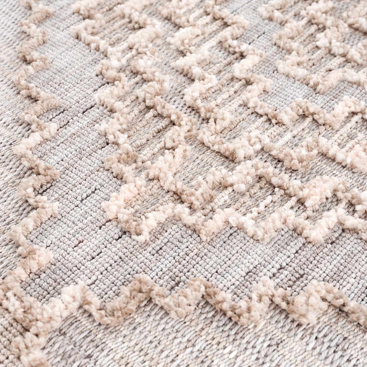 Designed exclusively for indoor use, the Ampusungan Area Rug works in various room settings. The color palette suits living rooms, bedrooms, dining areas, and home offices. The pile height provides cushioning without interfering with door clearances in most standard installations. The neutral tones with subtle peach accents coordinate with existing furniture and wall colors.