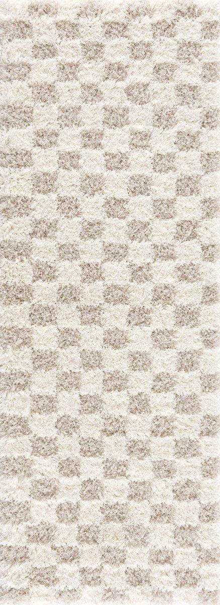 The checkered pattern in cream and light beige creates a neutral foundation that complements various interior styles, from modern farmhouse to contemporary living spaces. The subtle color palette allows this rug to blend seamlessly with existing decor while adding texture and visual interest to any room.