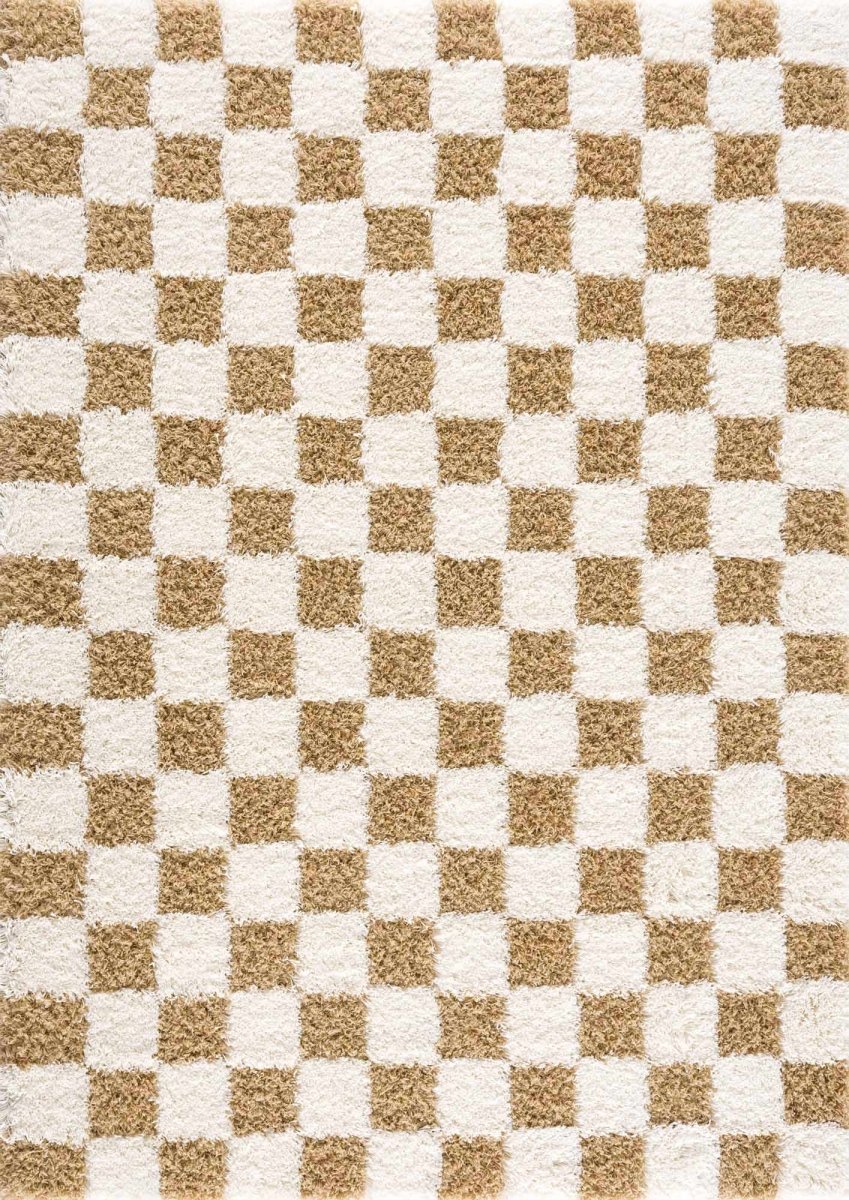 With a pile height of 2.05 inches, this rug provides substantial cushioning underfoot. The high pile construction creates a plush surface that adds warmth and comfort to any room. This depth also enhances the visual texture of the checkered pattern, creating dimensional interest.