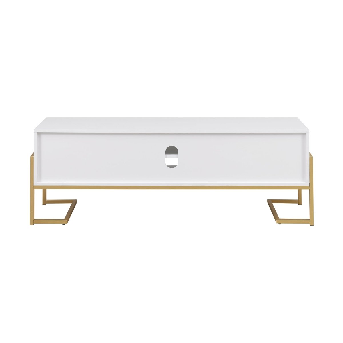 Regular price $68.00Glide into a subtly glam space that’ll invoke major interior inspo with the help of this modern, minimalist TV stand. Whether it’s in your entertainment area to help host your media components or in your living room to display décor, this console’s sleek silhouette will effortlessly update any corner. Two hardware-free drawers, open cubbies, and cord-management ports allow you to store your streaming devices and media console in sleek, organized style. With a small-space-friendly frame and a modern build that’ll easily complement all your other décor, this TV stand is at your service as whatever and wherever you need it to be.