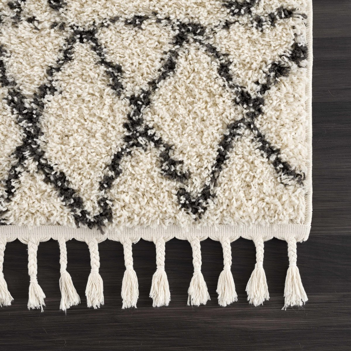 The Emlenton collection showcases a striking blend of charcoal and light beige tones that complement both modern and traditional interiors. The bohemian-farmhouse aesthetic incorporates elements of Moroccan rug design, creating visual interest without overwhelming your space. This versatile color combination works seamlessly with neutral palettes and serves as a foundation for layered décor.