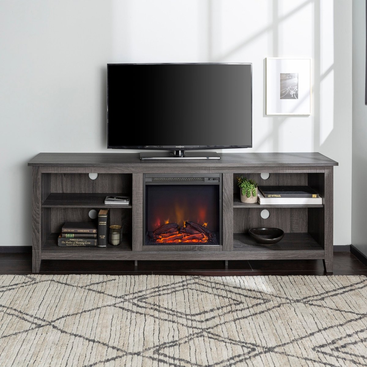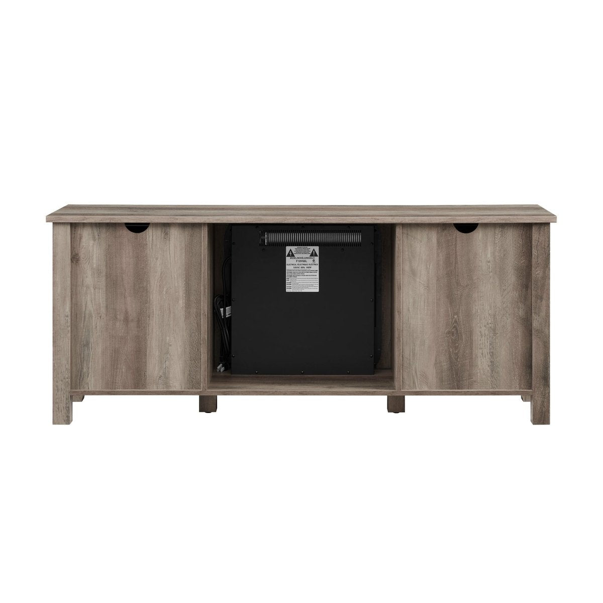 Regular price $217.00Display your TV in style with this TV Stand and Electric Fireplace. Simply slide the fireplace into its designated compartment and plug it in. Separate switches for the heater and LED flames mean you can choose to turn on just one or both to fit your comfort. Two adjustable shelves on either side of the fireplace can be used to display media components and home décor. With four cord management ports, any wires running out the back of the entertainment center will remain organized. This media storage stand mixes a classic, transitional influence with a nod to the farmhouse trend, so you can dress it up to fit your personal style.