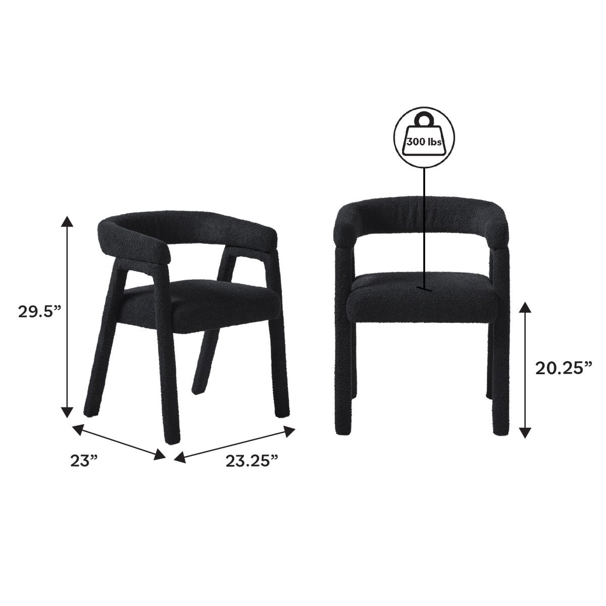 Regular price $230.00The Modern Boucle Rounded Back Dining Chair combines comfort with sophisticated design. This fully upholstered dining chair features a curved back design with wrap-around armrests that provide support during extended sitting sessions, whether you're dining, working, or relaxing.